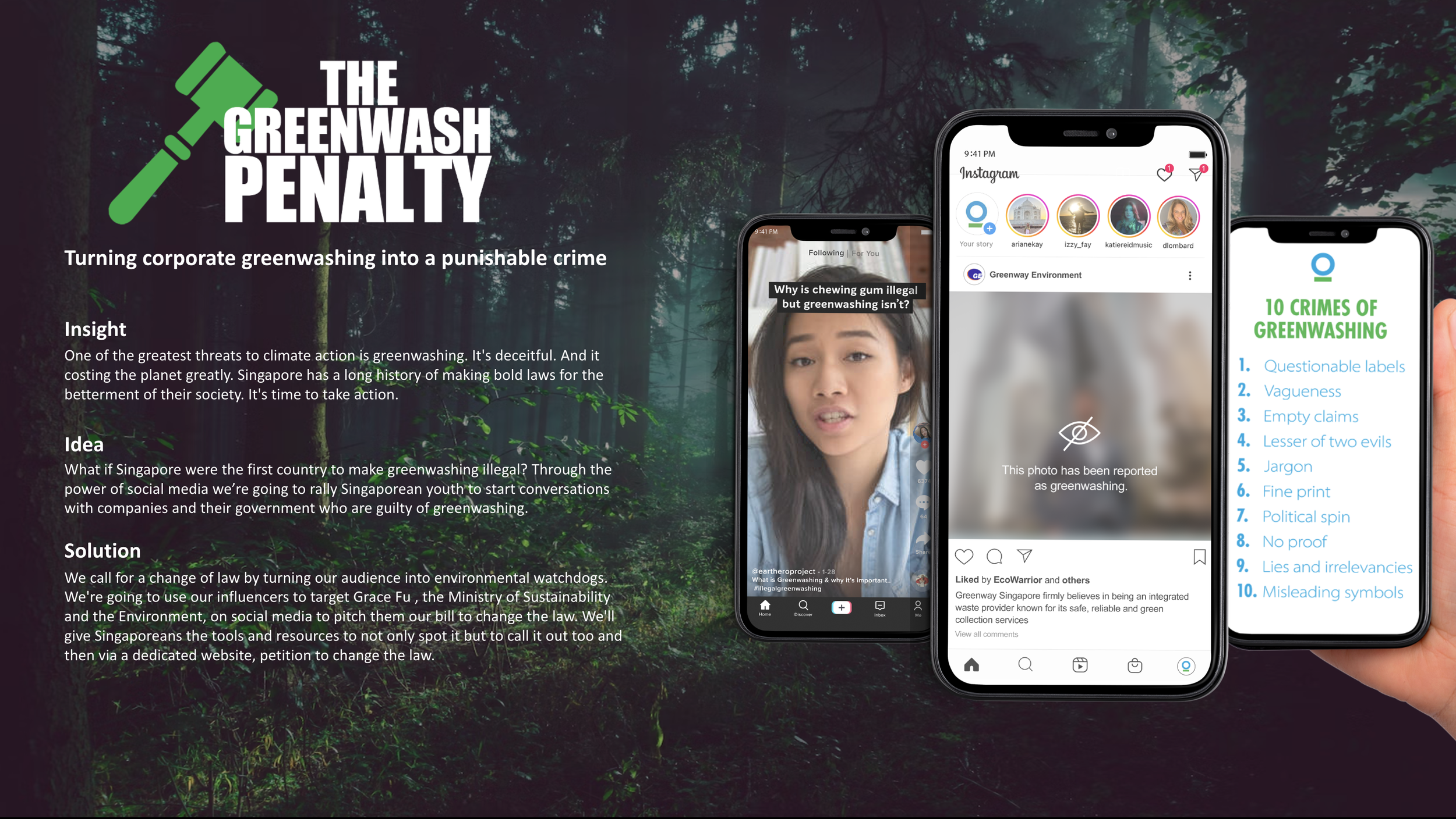 This Young Asia Spikes Competition digital brief was to get Singaporean youth to advocate for the values of Conservation International through a social media led campaign. The Greenwash Penalty secured us silver metal.